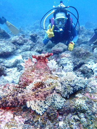 リピーターさんが、お友達を連れて来店です。 久々に太陽を見ました!北東の風やや強く、穏やかな東海岸エリアに向かいました。 呼吸、耳抜き、泳ぎと不安一杯でしたが、見事ミッション達成! 人生初の体験ダイビング、満喫です。